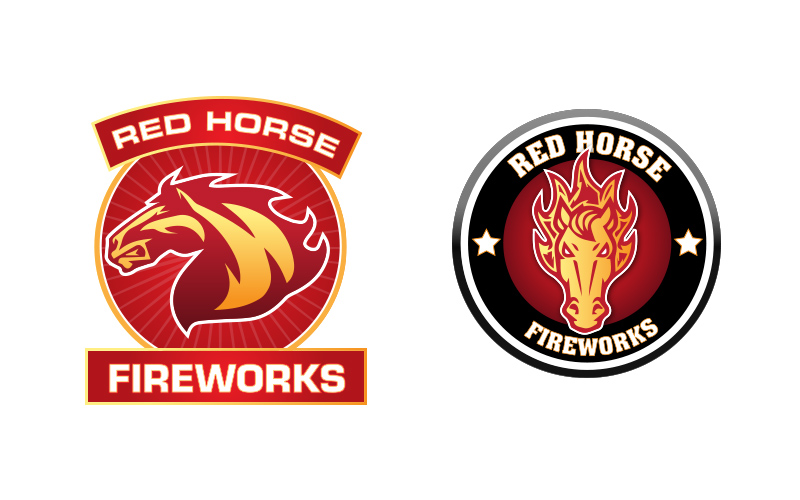 Logo variations for fireworks supplier, 2013. Red Horse Fireworks